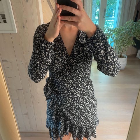 Nydelig, langermet kjole med blomsterprint fra Only. Den har snøring i livet. Størrelse 38, men passer 36-40. Selges da den ikke er helt min stil og aldri blir brukt🌸