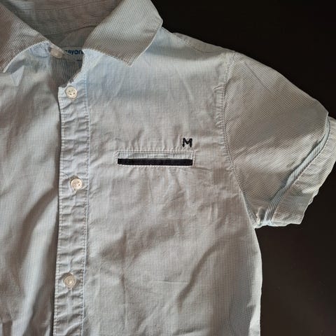 Kortermet skjorte med striper i hvit og grønn i str 128. Er kun brukt én gang.