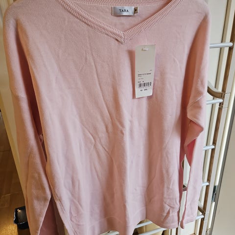 Størrelse small og lys rosa. Glidelås øverst bak.