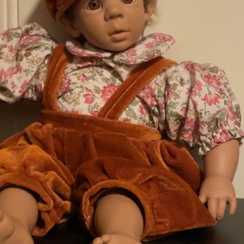 Søt mørkhudet dukke, guttedukke ca.30cm lang