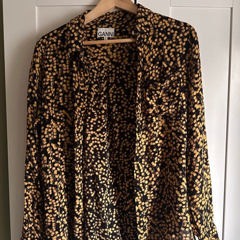 Pent brukt. Ingen skader. Fine volanger på avslutning arm, Bredde over skuldre 40cm. Bredde rundt bryst målt under arm 120cm. Lengde 58cm