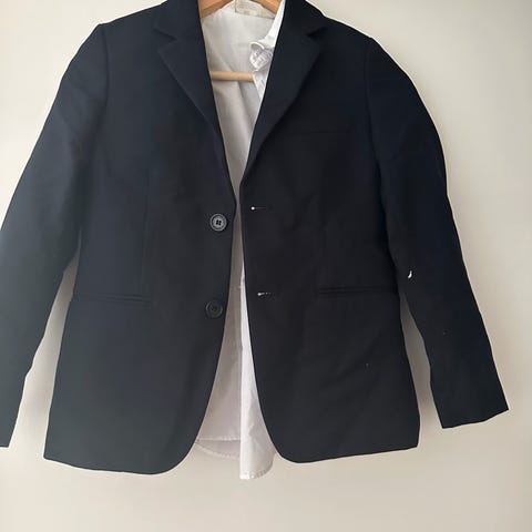 Original Name it dress, pent brukt. Dressjakke, hvit skjorte fra Cubus str. 122. Noe slitasje på knær på buksen (se bilde). Ellers ingen anmerkninger.