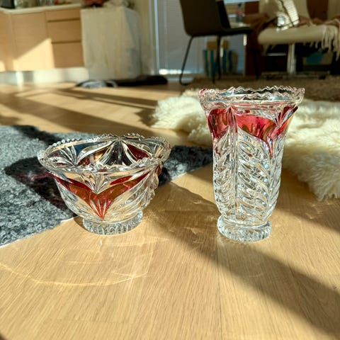 Nydelig Krystall av diverse. Vaser. Glass. Urner. Karaffel