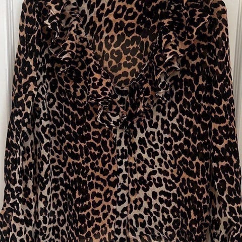 Utrolig flott bluse med volanger på bryst fra Saint Tropez. Størrelsen er en XL, men denne er litt liten i størrelse og passer bedre en L. Denne fremstår som helt ny fra butikk. Ny pris 899,- Sendes🤎