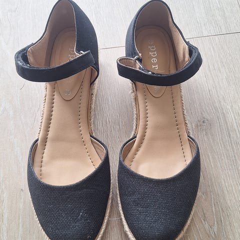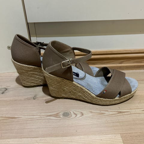 Pene kilehæl sko i str 41.Mosegrønn farge med gullfarge bak på helen.