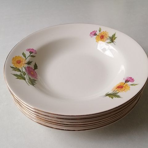 Tre av tallerkene har noen svake grå striper som kan minne om krakelering men fremstår generelt i god stand