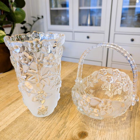 Glasskål i midten er funnet og den er uten skader.