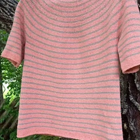 Selger denne fine sommertoppen videre, da den er for stor og ikke har blitt brukt. Den er hjemmestrikket i merkerisert / litt blankt 100% bomullsgarn og har et nydelig hullmønster.