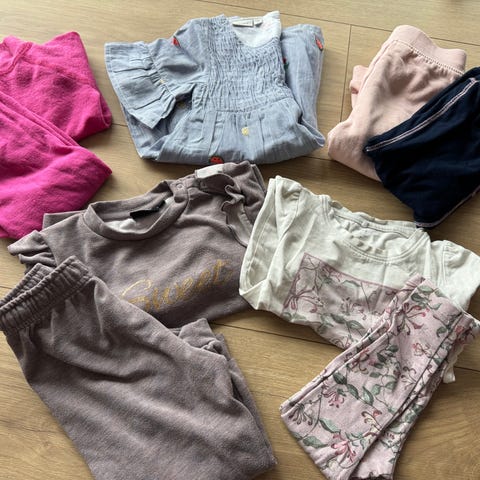 Selger disse kvalitetsklærne som er kjøpt nye og pent brukt av et barn. Se bilder for størrelse og pris. Fra 15 kr. Mulighet for klespakke: 450 kr.