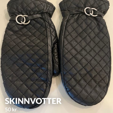 Svarte hansker i imitert skinn.
