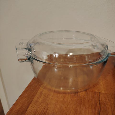 Die gratengformen er gått i stykker. Men lokket er fremdeles der og så godt som nytt. Har du en gratengform og leter etter et passende lokk? Målene til kanten av gratengformen: 22 cm lang, 17 cm bred. Målene til den ytre kanten av lokket: 25,5 cm lang, 20,5 cm bred.