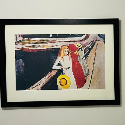 Pikene på broen er et "maleri" av Edvard Munch m/motiv fra Åsgårdstrand, selges kr. 650.-