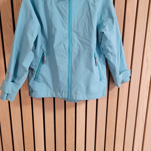Pent brukt skijakke i en tøff og knall farge. Tåler en del vann. Passer til ungdom/liten herre. Har snøstopper og flere lommer.