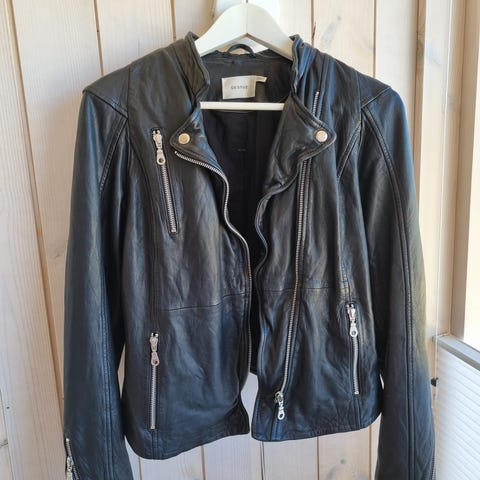 Selger meget pen skinnjakke i ekte skinn. Farge svart, størrelse 42. Merke: Gestuz. Kjøpt ny for kr. 2400.