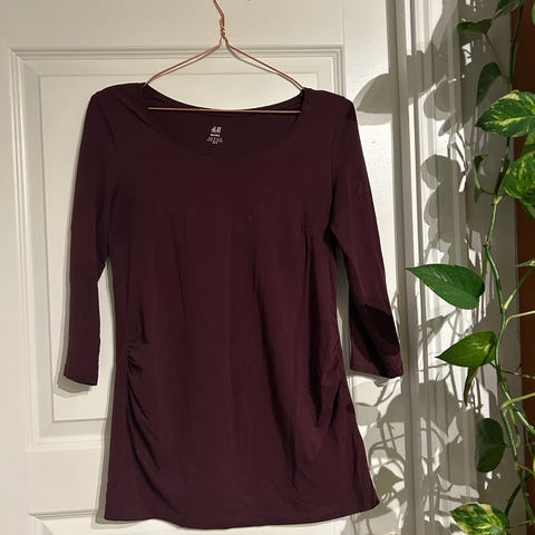 Fin mammagenser som forsåvidt også kan brukes ellers. Fake skjortekrage og skjortekant nederst (påsydd). Mørkeblå og klassisk. Fint brukt.