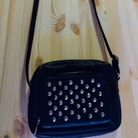 Ubrukt, hvit med svart. Bomull og polyester. Foret.