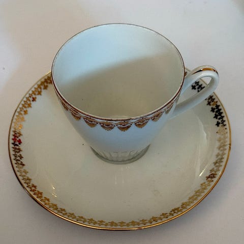Kaffekopp fra chekoslovakia med gullkant med bord under gullkanten som også er i gull