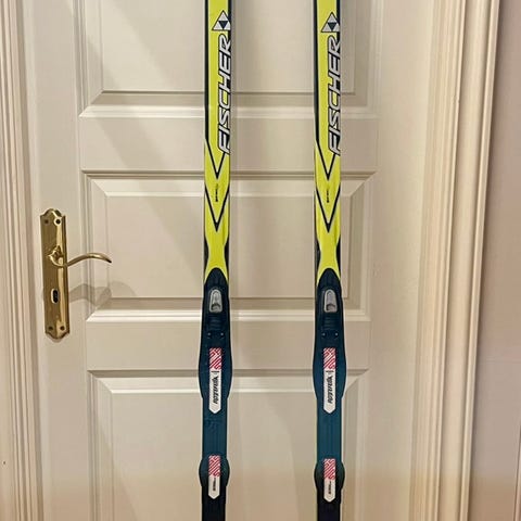 Lite brukte Fischer-ski med Salomon propulse-bindinger og Salomonsko str 38 2/3. Ett lag med lagringsvoks på, evt kan skia gjøres klare til bruk.