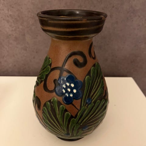 Uppsala Ekeby vase ca 1920. Høyde ca 14 cm, omkrets ca 9 cm.