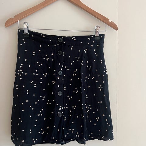 Et luft og behagelig skjørt I 100% viskose. Ankel lengde og knapper med en liten splitt nederst. Lite og pent brukt. Str 40
