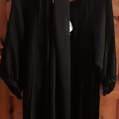strikket knelang kjole fra Cellbes i marineblå med sølvmønster