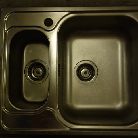 Platen har en ripe (bildet), men vasken er som ny og ikke brukt. Platen må evt kappes da den er knukket i enden på den venstre siden.