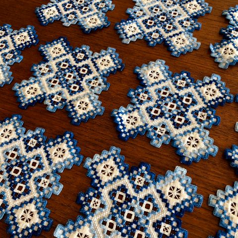 Hvitt broderi. ( Tykksøm, kontursting og hullsøm )