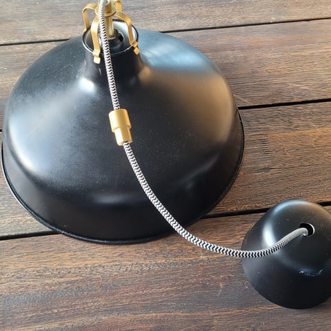 Tidsriktig taklampe i sort og hvit metall.