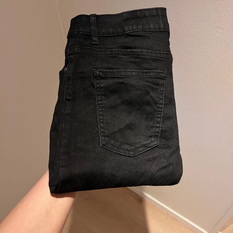 Kjøpt for noen år siden, og brukt kun et par ganger. Meget pen fasong, feminin med smal midje og litt utsvinget over hoftepartiet og smalere nederst. Innstikkslommer på begge sider. (Ligger til salgs flere steder)