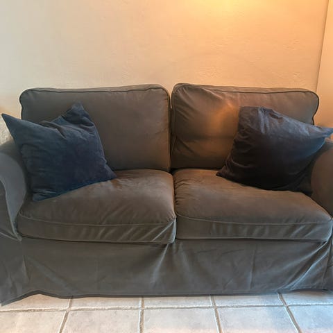 Selger 3 seter sofa i mørk brun hud. Fremstår som nesten ny. Faste puter , og god sittekomfort. Selges grunnet plassmangel. Ikea Ektorp.