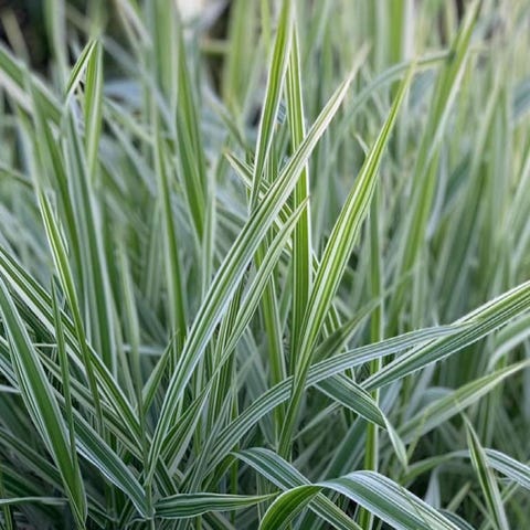 Strandrør 'Picta' (Phalaris arundinacea 'Picta') er et dekorativt prydgress med elegante, hvitstripede blader som gir lys og struktur til hagen🌿