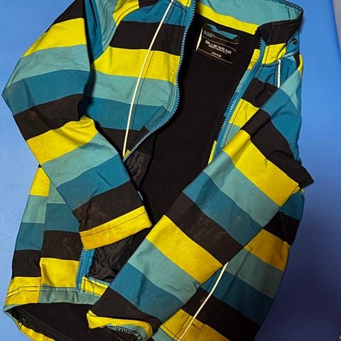 Pent brukt skalljakke selges. Uten