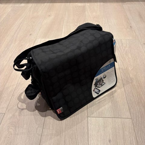 Praktiske lommer til å oppbevare blant annet flasker og våtservietter. Flere lommer i.