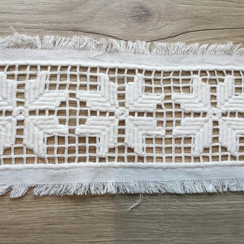 Fin påske gul brikke i hardangersøm selges for 50 kr . Kan sendes mot dekning av porto med post nord eller fiks ferdig .