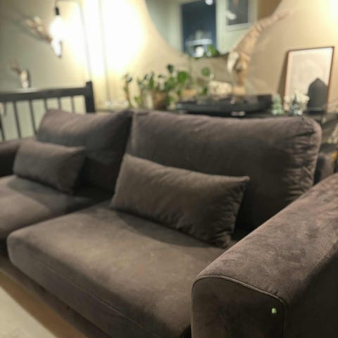 Sofaen er romslig og komfortabel, perfekt for både familie og gjester.