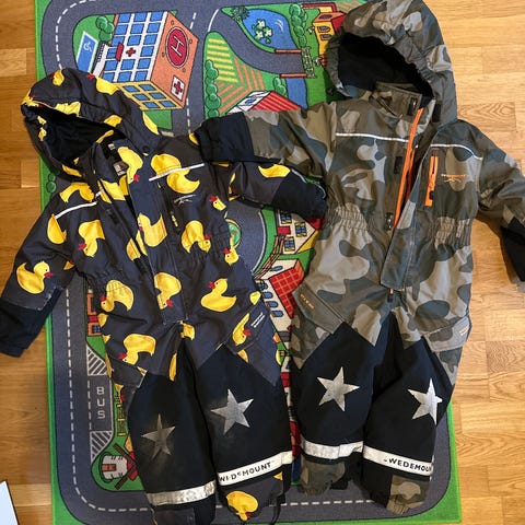 Selges to vinterdresser/ parkdresser str 104-110 100kr per stk. Ingen skade bortsett fra litt slitasje i en av dem i høyre kne, fiksert med lapp.