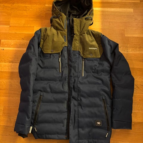 Lekker Sabotage ski og snowboardjakke. Er merket med str. M, men er helt klart Large.