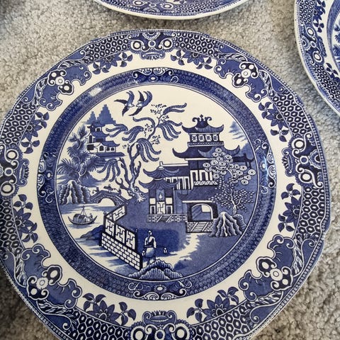 Willow. Barratts of stattfordshire. England.. engelsk. Blå. Blått. Blått mønster. Vintage. Mønster. Nostalgisk.