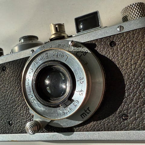 Flott gammelt Leica kamera med etui som trolig har tilhørt min farfar. Ikke brukt på... ja, Gud vet hvor mange år...
