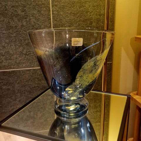 Den er 17 cm høg, og 35 cm i diameter i toppen, litt bredere på sitt bredeste.