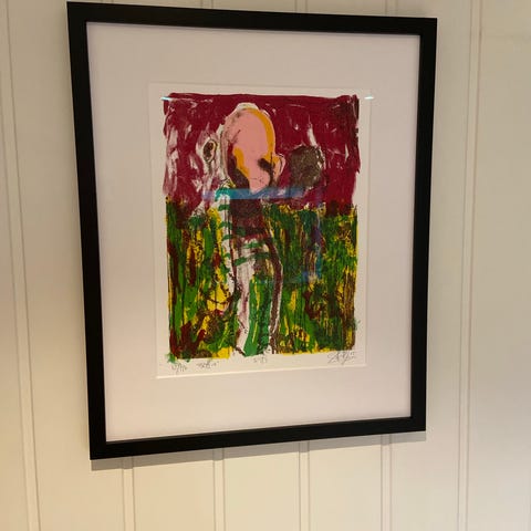 Innrammet med eikeramme.
