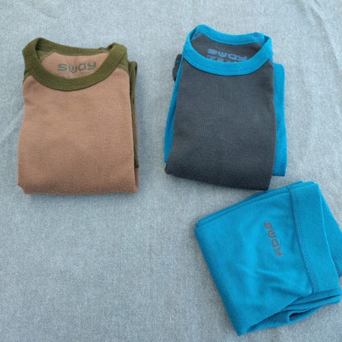 Fint brukte ullplagg brukt av en gutt