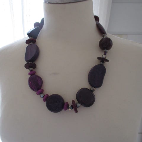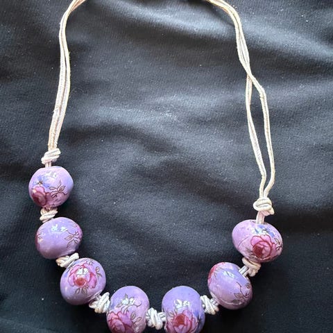 Langt halskjede med lilla stener