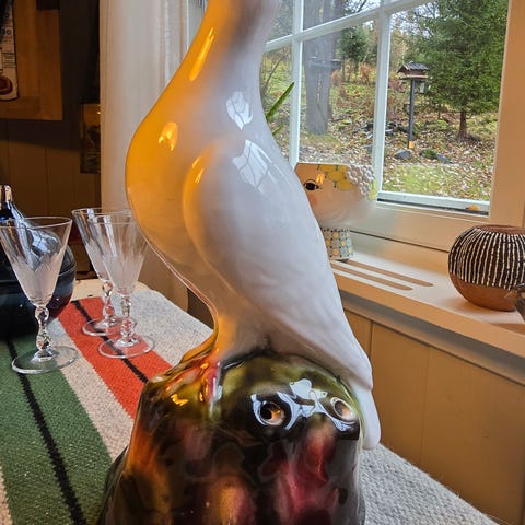 Gammel pen å sjelden måneskinnslampe med 4 forskjellige motiver på selges kr 3500. Total høyde 78 cm.(bare lampa 40cm).