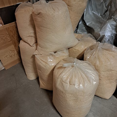 Flisa er fra vedkapping forrige vinter, ligget til tørk etter det.