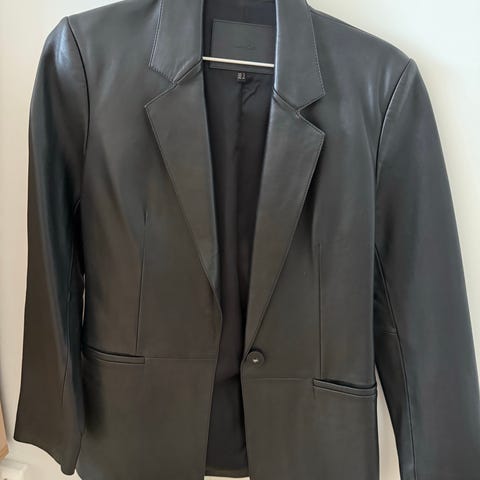 NY uten etikett - Massimo Dutti Dame Sort nappa skinnjakke uten krage - XS