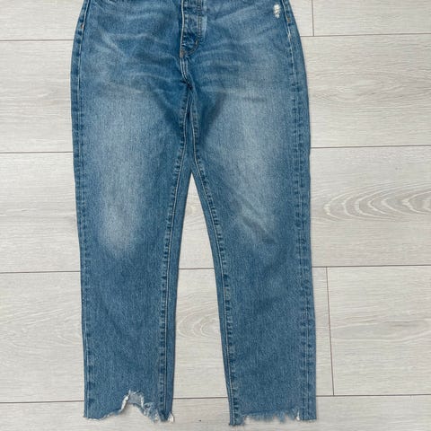 Pent brukt Never denim jeans skinny med slitte detaljer nede på leggen str s.