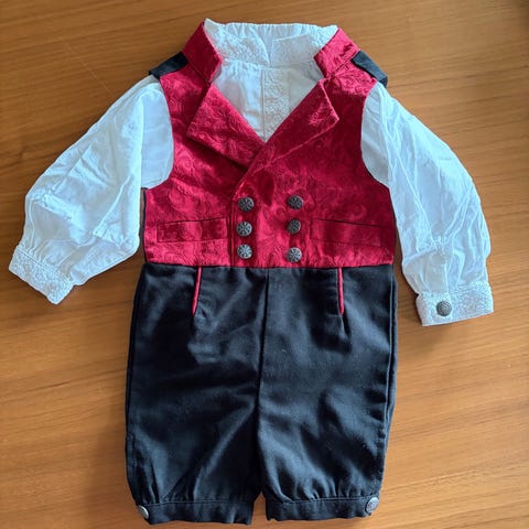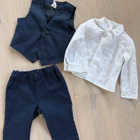 Kjempefin, 3-delt dress med bukse, skjorte, vest og slips. Aldri brukt. Passer fint til 17.mai eller vår- og sommerselskap.