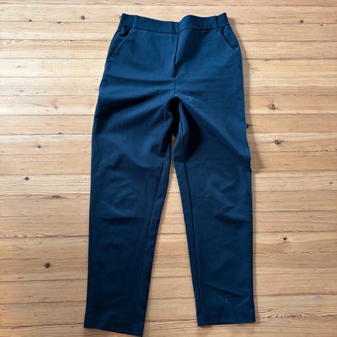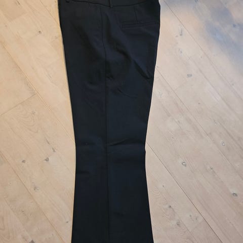 Veldig lite brukt svart bukse i polyesterstoff. Størrelse 46. Lukkes igjen med glidelås og knapp, se bilde.