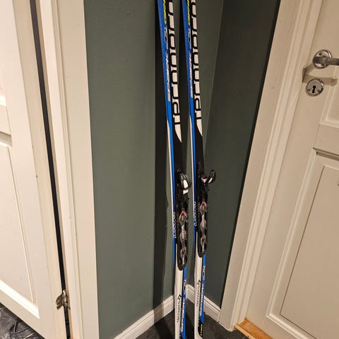 Selger ski til barn. Har blitt brukt en del, og mangler et feste på hælen, se bilde.